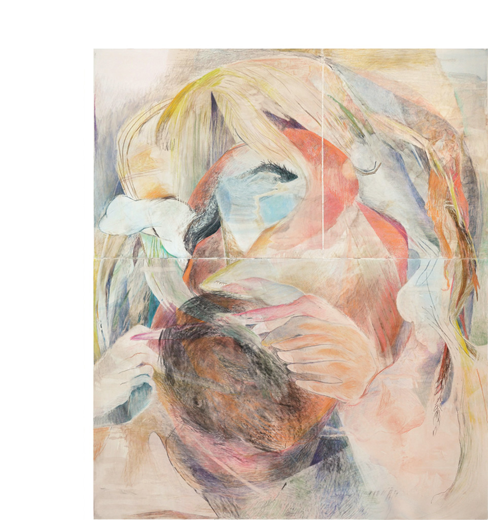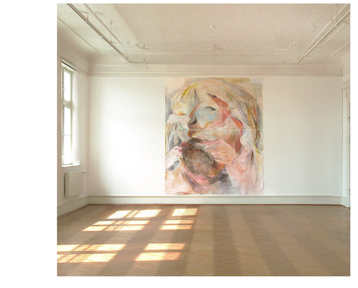 Bettina Carl SCHÜTTEL DEIN HAAR FüR MICH SHAKE YOUR HAIR FOR ME 2013-2016 water colour, charcoal, pastel chalk on paper, three parts, 276 x 225 cm |