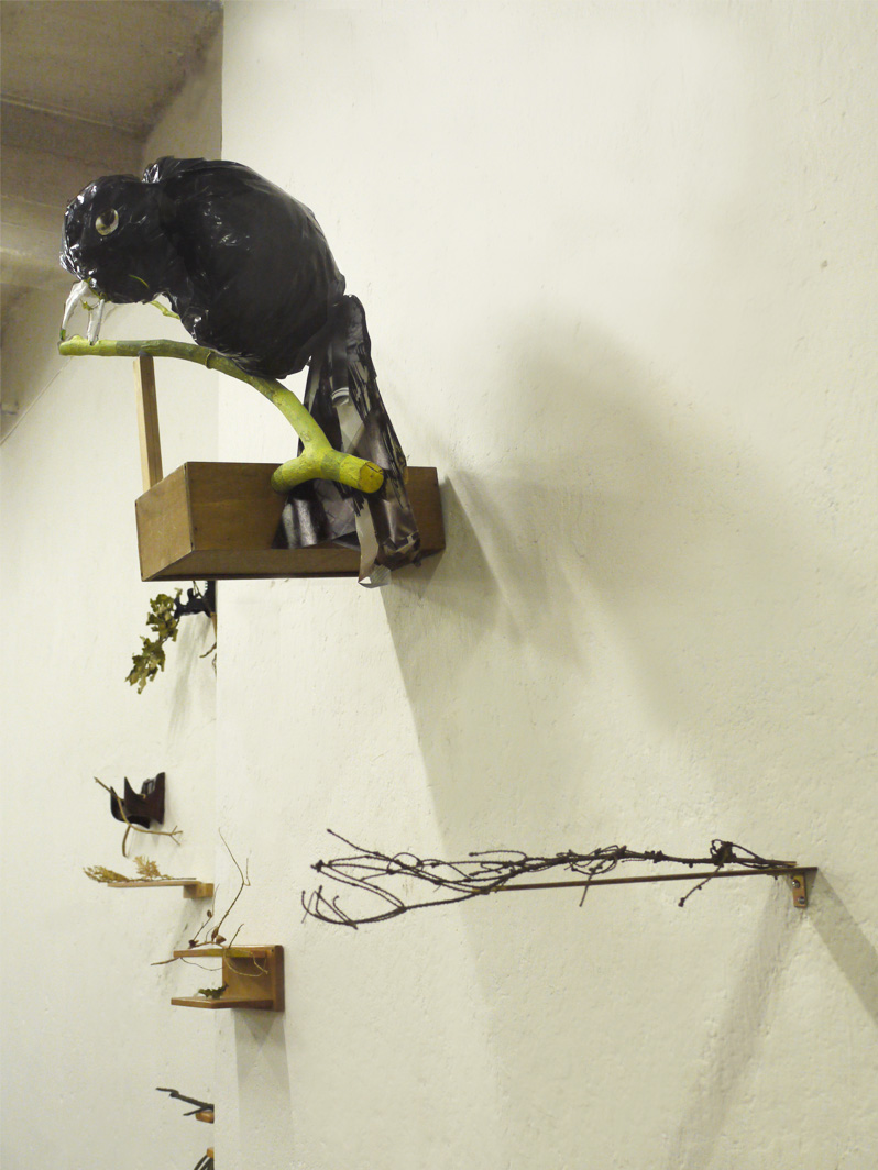 Bettina Carl: DEITIES OF THE FOREST: CUCKOO, 2011. Installation (objects, text, sound) | |||||