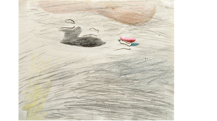 Feld, 2013 Kohle, Pastellkreide, Aquarell, Farbstift, Collage auf Papier 27 x 35 cm |