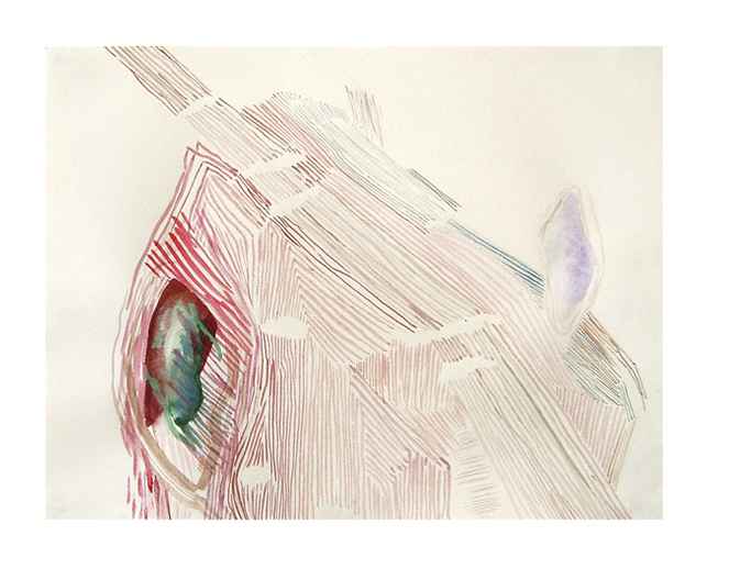 aus der Serie ÄUGEN: Schlesier, Schlesierin, Scheitel und Ross, 2013 Aquarell, Acryl, Farbstift, Bleistift, Kugelschreiber auf Papier, je 27 x 36 cm |