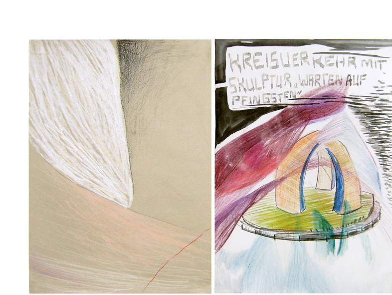 Details aus KAUNTRI 1, 2008-2010. Tusche, Aquarell, Gouache, Kohle, Pastellkreide, Farbstift, Bleistift auf Papier