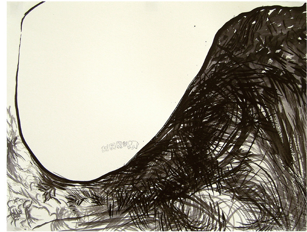 Tusche, Aquarell, Bleistift auf Papier, ca. 40 x 58 cm