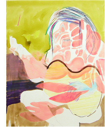 pencil, watercolour, acrylic on paper, 65 x 55 cm