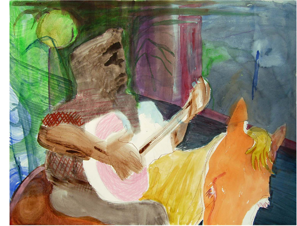 pencil, watercolour on paper, ca. 50 x 65 cm