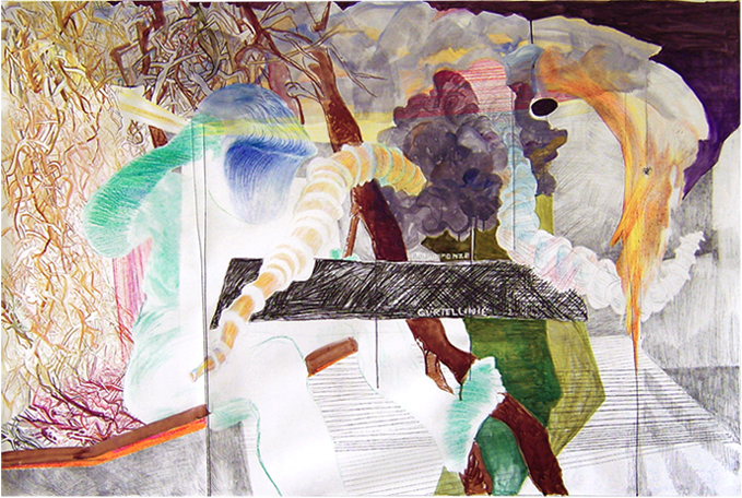 pencil, charcoal, watercolour on paper 150 x 223 cm
