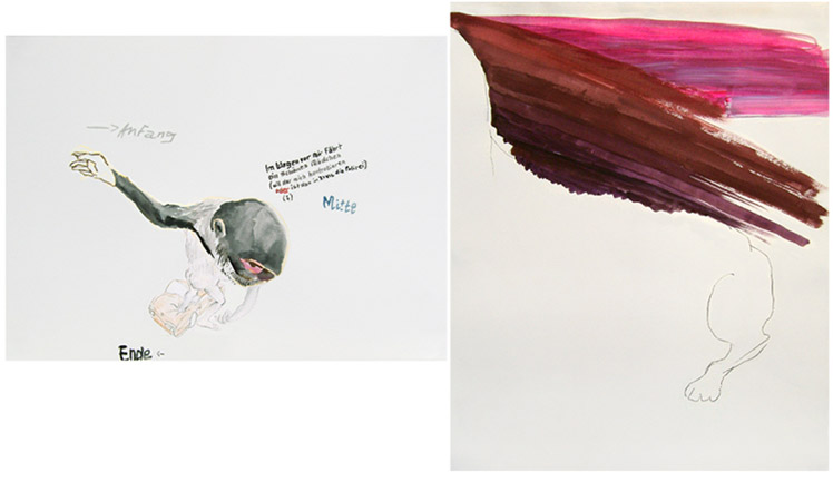 pencil, ballpoint pen, watercolour, acrylic on paper, two parts, 30 x 42 cm, 44 x 35 cm | |||||