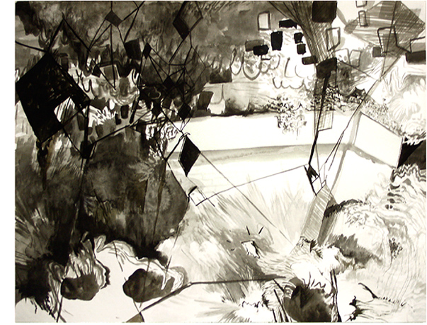 ink, watercolour on paper,